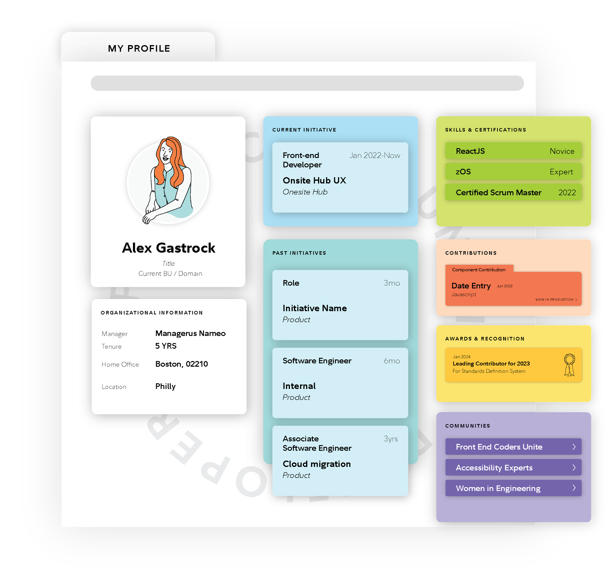 A resource to learn more about colleagues, see their skills and past work, and gather information to propose collaborations or project staffing assignments. Unlike current employee directories, My Profile is focused on tech associates’ needs, emphasizing the skills and initiative work that really speaks to what they’re capable of.