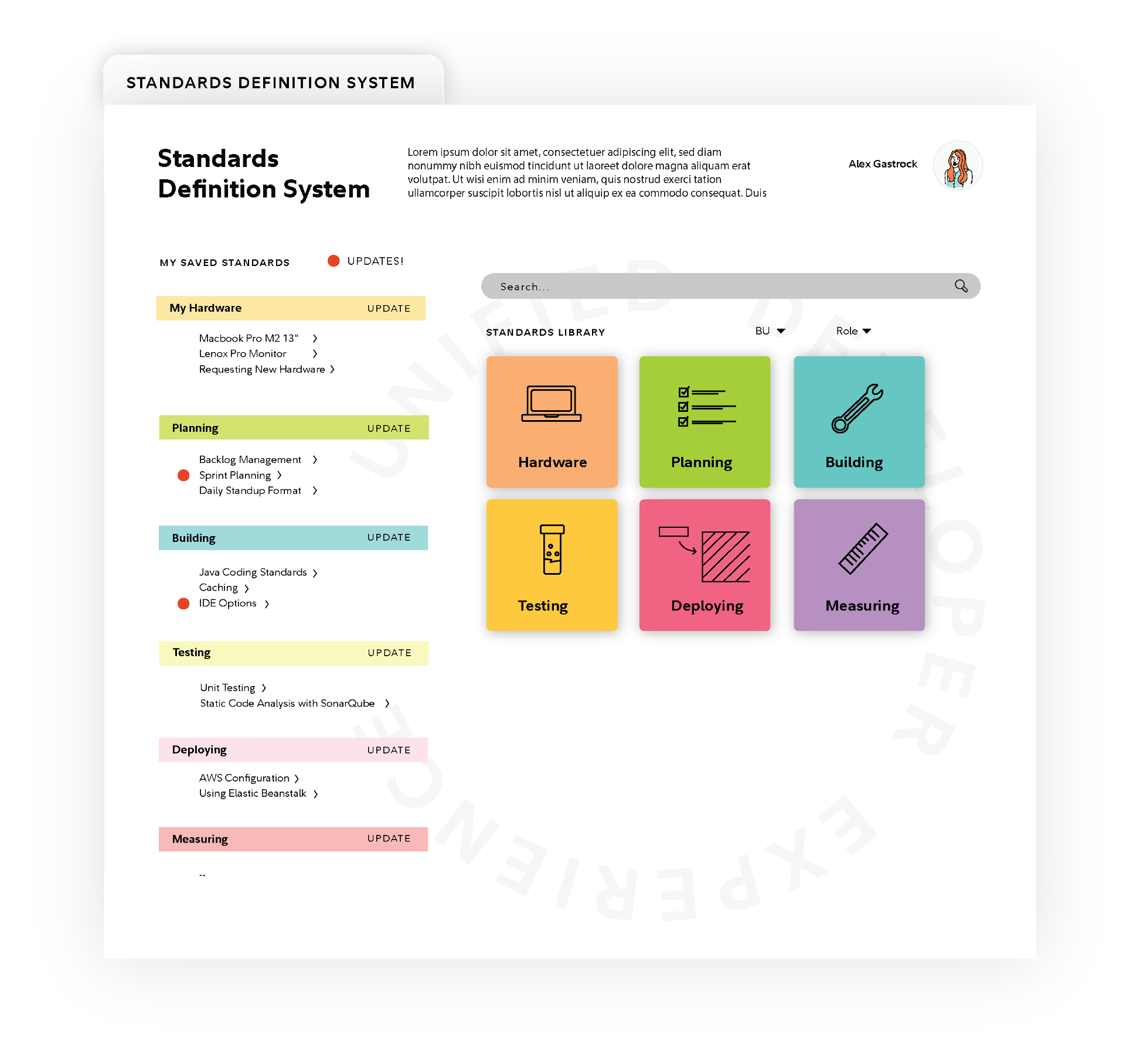 A single home for standards at Fidelity, covering not just design and code standards, but common processes, patterns, procedures, and tools. Save your oft-referenced standards to a list for easy access and to be notified of changes. Or filter standards by your role or BU to make browsing simple.